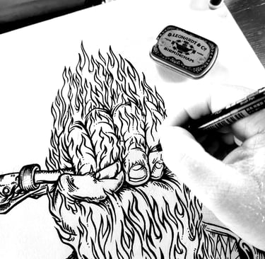 The main elements of this branding project for Rebellion.Bike e-bike and clothing company which launched in 2024 was an A3 hand-drawn clothing graphic for merch and a handdrawn illustrative logo for both print and web use. These were used for t-shirts, crew jumpers, hats, web design, businesscard and flyers. This will be an ongoing collaboration with new merch items planned.