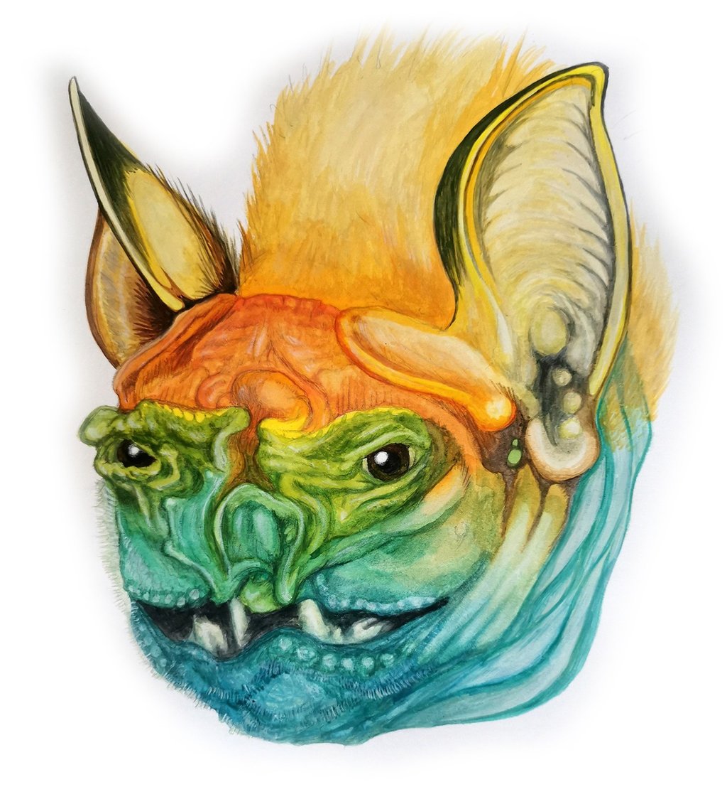 Watercolour and Graphite on 200gsm paper illustrated response to the research paper 'As Blind as a Bat? Opsin Phylogenetics Illuminates the Evolution of Color Vision in Bats' found here: https://pmc.ncbi.nlm.nih.gov/articles/PMC6340466/