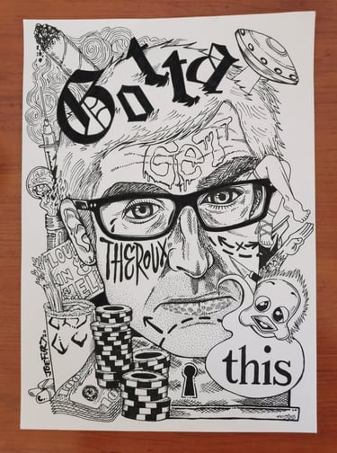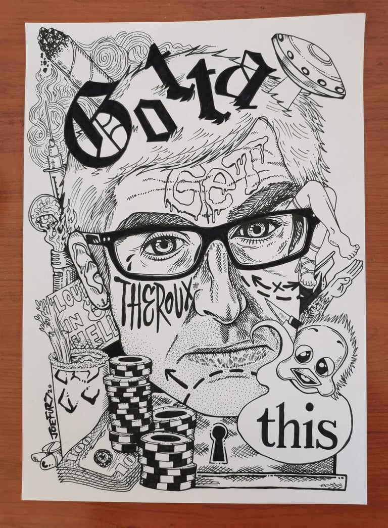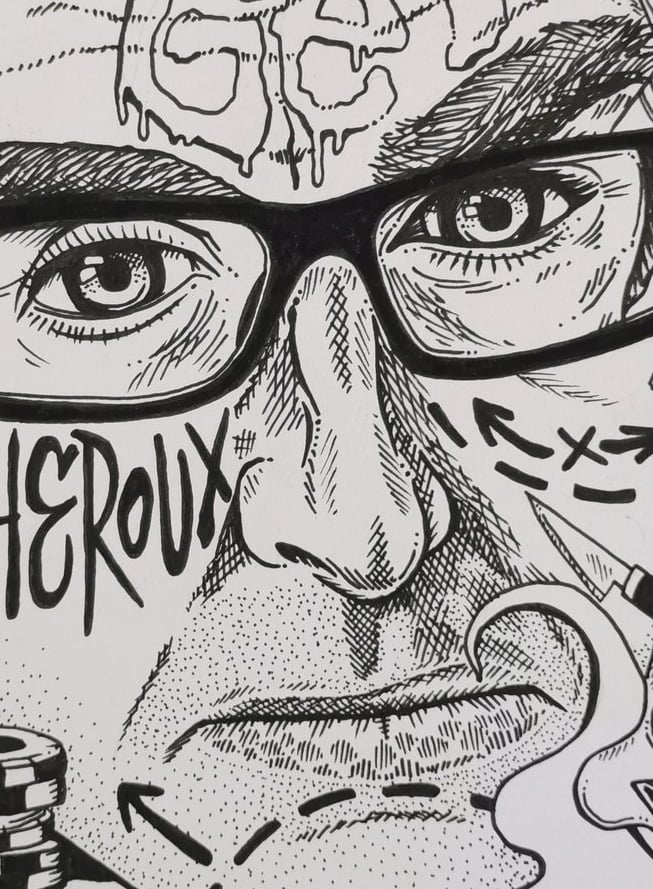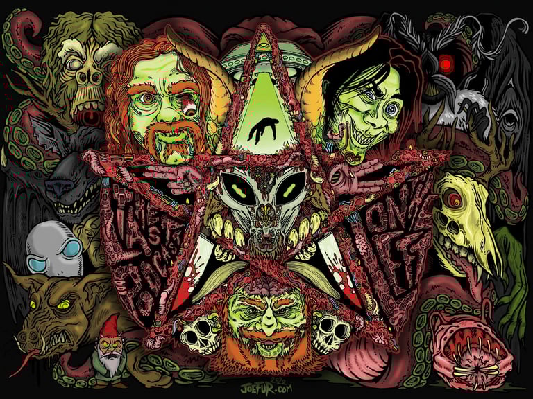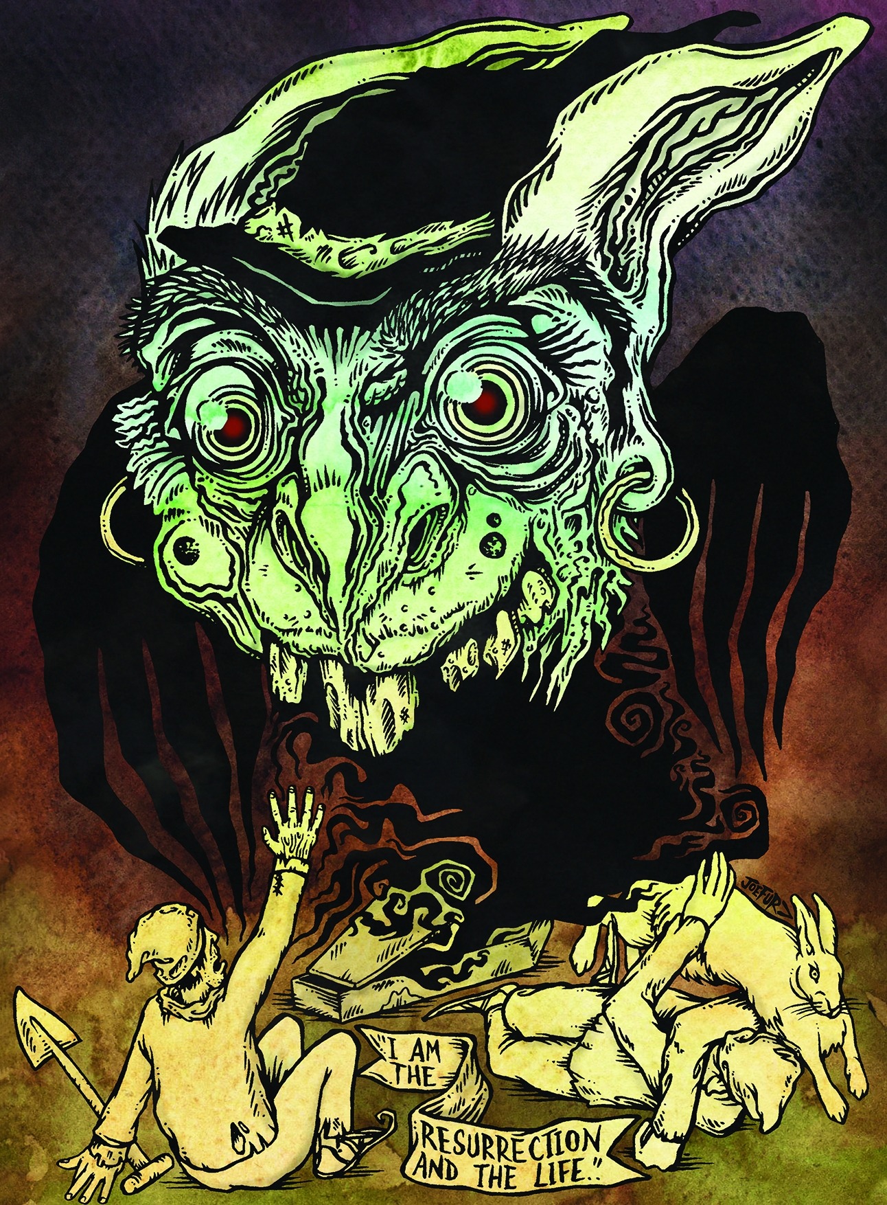 The design was creatued using pigment ink on 200 gsm paper and digitally coloured using a variety of professional brushes. The drawing was then developed into a complex animation to be used on social media and sent to both the podcast and the comics publisher. The design was creatued using pigment ink on 200 gsm paper and digitally coloured using a variety of professional brushes. The drawing was then developed into a complex animation to be used on social media and sent to both the podcast and the comics publisher for promotion.