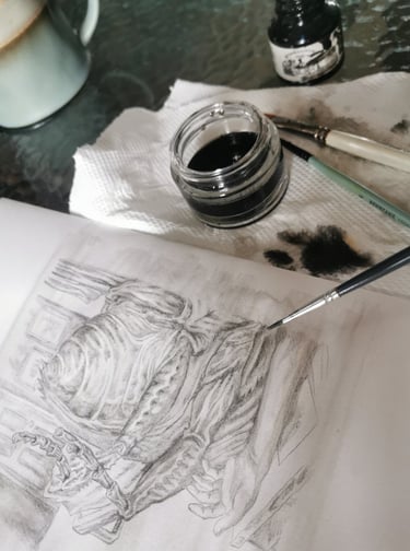 'The Transformation of the Witch of Treva' Book Illustration for Dark Cornwall, The Gothe Institite of the Arts and The Cornish Folklore Museum. Brush Pen and Layered Watercolour on 300 gsm paper