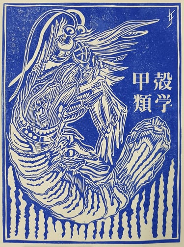 Lino Cut Book Cover Concept 'Shellfish Science: Japanese Edition'