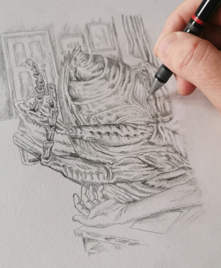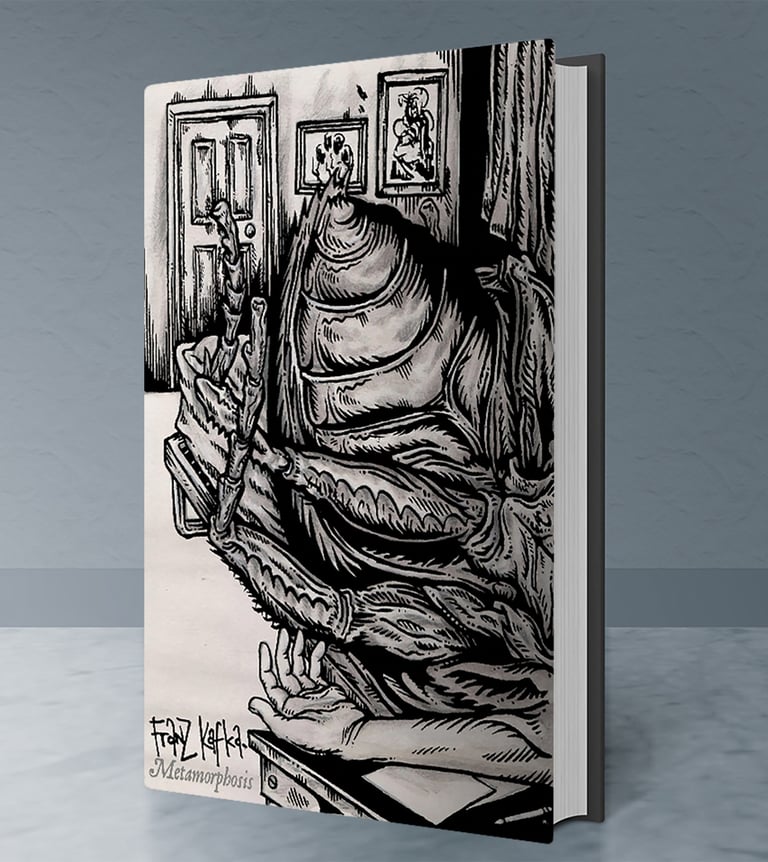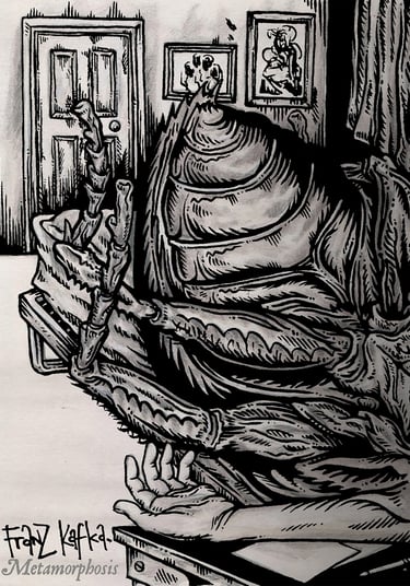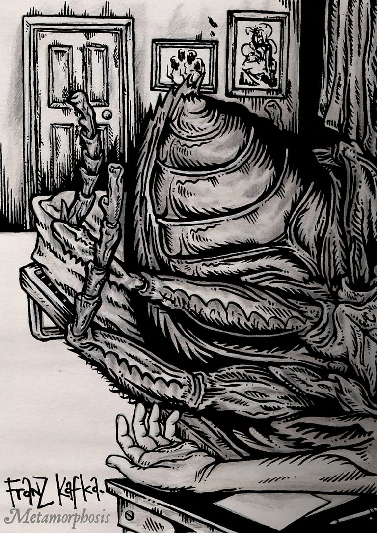 Concept Book Cover Illustration for Franz Kafka's 'Metamorphoisis'. Dip-pen Indian Ink and Graphite.